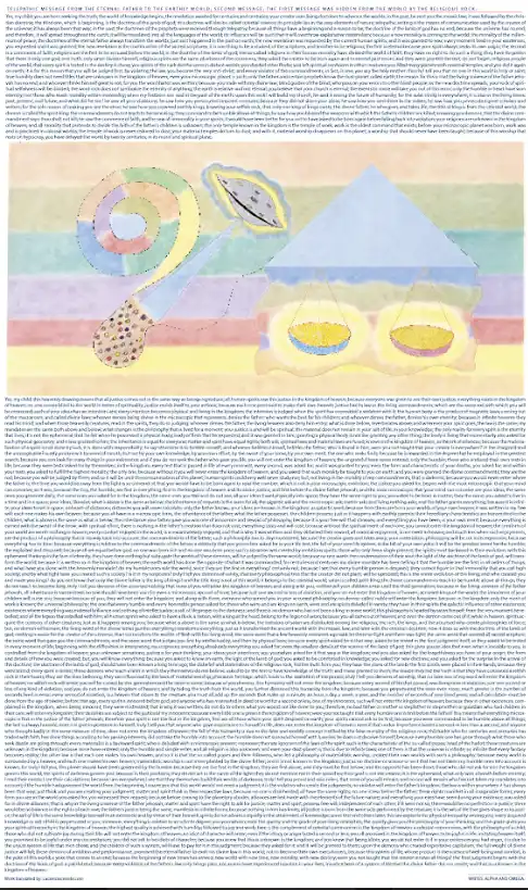 TITLE: TELEPATHIC MESSAGE FROM THE ETERNAL FATHER TO THE EARTHLY WORLD; SECOND MESSAGE; THE FIRST MESSAGE WAS HIDDEN FROM THE WORLD BY THE RELIGIOUS ROCK.-