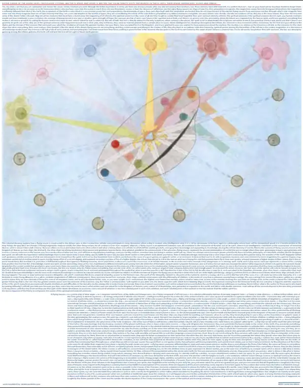 This celestial drawing explains how a flying saucer is constructed in the distant suns; in this construction, infinite suns participate in every dimension; when a ship is created, solar intelligences arise; it is a call to reincarnate; to be born again in a philosophy whose basis will be materialized speed; it is a transformation in the Holy Trinity; the gray discs are cherubs of living magnetism; ready to solidify the other living virtues; for all creation is born from magnetic alliances; a flying saucer is an agreement between suns; all contribute to the realization of the ship; just as on Earth, where many intelligences contribute to the construction of terrestrial devices; what is above is like what is below; there are alliances above and below; between what is above and what is below, there is an infinite; in which infinite worlds gravitate, emerging from knowledge and expanding in knowledge; among the infinite diversity of worlds, there is the universe of flying saucers; known in the Kingdom of Heaven as silver ships; like the Earth, the silver ships live eternal evolutions; their powers and greatness have no limits; they advance parallel to the advancement of the universes; flying saucers represent the ancient philosophies of worlds that are no longer where they were gravitating in space; past greatness and lived in a Cosmos unknown to the human race; because the divine Father had, has, and will have many planetary dwellings; even you earthly children, eternities later and living in another world will say: I lived on a distant and microscopic planet called Earth; there I tried the philosophy of a little flesh monkey; Worlds disappear and spirits are left with the experience; with knowledge; from it, their future body is born; flying saucers fulfill the same law; because divine Justice is everywhere; both above and below, there is living knowledge; witnessing how a silver ship is built is witnessing the supreme living; the wonders of the Earth disappear before such greatness; and the memory of what was witnessed is never erased from the spirit; and it carries this Revelation from world to world; here is the cause of a space genius; or a galactic writer; or an innovator in devices that have to do with magnetism; because one’s own intuition has been magnetized to a greater degree; magnetization carried out at another point in space; it is like being of fire of a certain degree; and suddenly receiving a portion of fire of a higher degree; the virtues that add up to 318 in the human spirit are of living fire; and they possess hierarchy in their own quality; whoever possesses a higher degree in their calorie, that is the superior hierarchical; this law that is in yourselves is fulfilled throughout the Expansive Thinking Universe; above and below; in the macro and in the microcosm; in its infinite heavens; in the microbe and in the colossal; it has always been so in eternity; each world, each flying saucer, each sun represents a calorie of fire, coming from another fire; from the fire of knowledge; matter and spirit are the same thing; they are fire; fires manifested in different free wills and coming from the divine fire of the Father; whose calorie surpasses the known; and so it will be forever and ever; because the divine Father expands in all that is imagined; He has been expanding before the current worlds that gravitate in space were born; there are creations of the Father that will never be known by the creatures of the Universe; because it is unattainable; flying saucers represent a solar science, among infinite others; no one in the Universe can proclaim that they have reached the highest in knowledge; profound and fatal error; because the more one knows, the less one knows; only the Father knows everything; that was the error of the so-called satan; who, being an angel of solar category, believed he had enough power to command the entire Universe; the true story of the demon will only be known; because he is the first to fall in the Final Judgment; because to whom much is given, much is required; has it not been propagated throughout the world that satan is wise because he is old? therefore he is one of the first to fall; he who does it pays for it; so it was asked in the Kingdom of Heaven; silver ships have a construction that must be classified; because knowledge is not the same in all creatures; knowledge is as relative as material worlds are; matter and spirit are relative in infinite and eternal degree; the flying saucers that have visited the Earth are of the Alpha and Omega category; and their forms are diverse and infinite; when these ships are built, the following happens: The suns or solar luminaries receive a telepathic call; which constitutes the divine universal telepathy; proper to the firstborn suns; the reach of this telepathy extends to all points of the Universe; and it is a loving call; it is a call to the free will of the suns; it is a call made by some solar hierarchy; it is a call destined to create living alliances; it is a call to combine magnetisms of different mental power; there everyone learns from everyone; there reigns celestial communism with the philosophy of children, in the midst of a joy that is unknown among human beings; the suns coming from remote life systems gather at a certain point in space; they are true carnivals of living fire; suns of all imagined colors; and in all is the divine Father; who, as you were taught, God is everywhere; the highest solar hierarchies see Him; others intuit or sense Him; as seen in the celestial drawing, the suns form an Omega circle; in the center is placed the Solar Father, of greater hierarchy; that is, the one who has greater creative power over the elements of the Universe; only the Father is unsurpassable; I will explain to you, little one, the divine equation with which these dazzling ships are built; the equations coming from the Universal Trinity are not complex; as happens with the equations of 